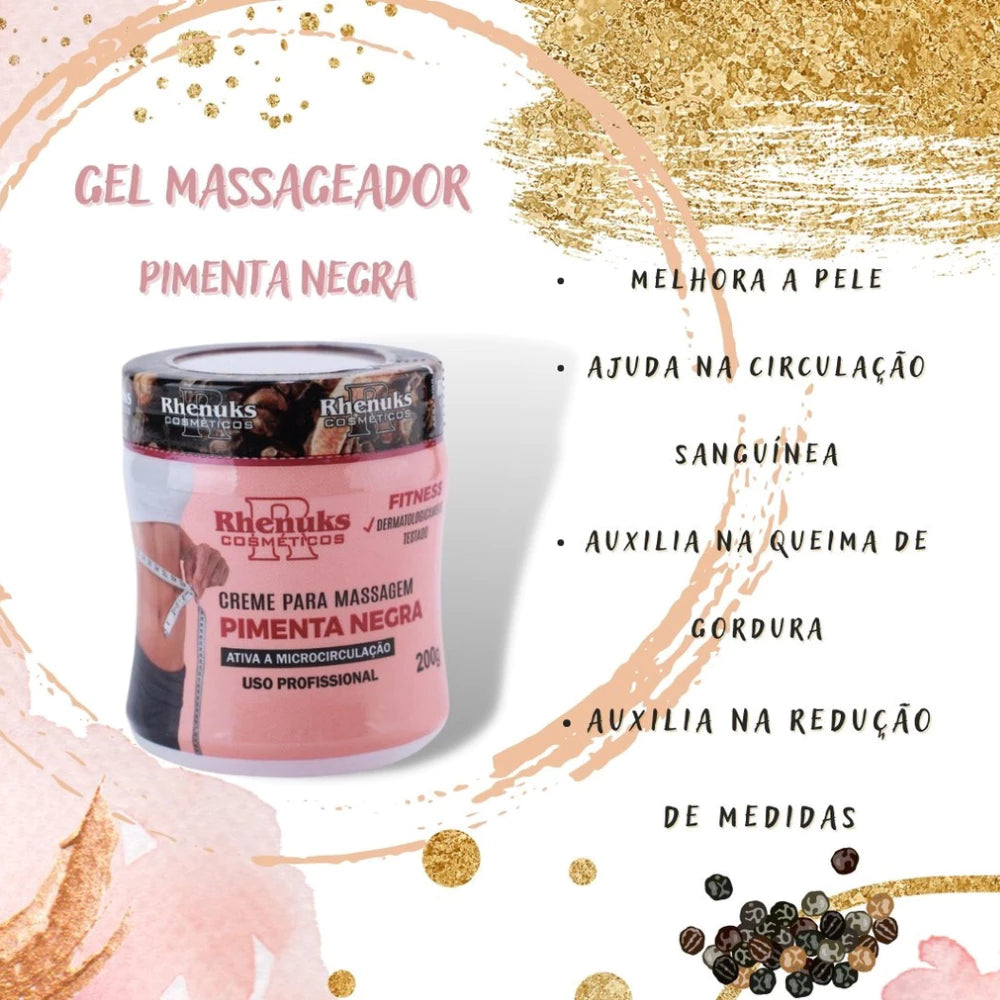 O Gel Redutor de Medidas Pimenta Negra 200g é o aliado ideal para quem quer sentir a pele mais firme e com aparência mais uniforme. Com ação termo ativada, ele promove uma sensação de aquecimento que potencializa a massagem e ajuda a estimular a aparência de redução de medidas, deixando o corpo com um toque mais liso e definido.